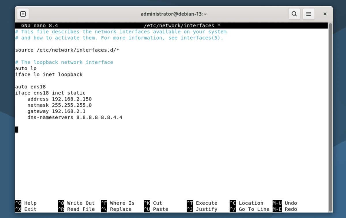 Congratulations, you have successfully configured a static IP address on Debian 13.