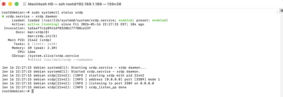 Step 4 : Verify that the XRDP service is running.