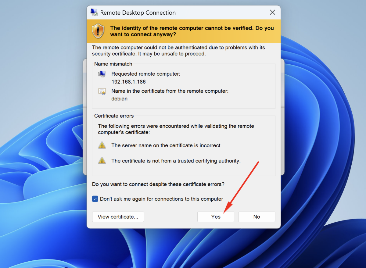 Congratulations! You have successfully configured Remote Desktop GUI on Debian 13.