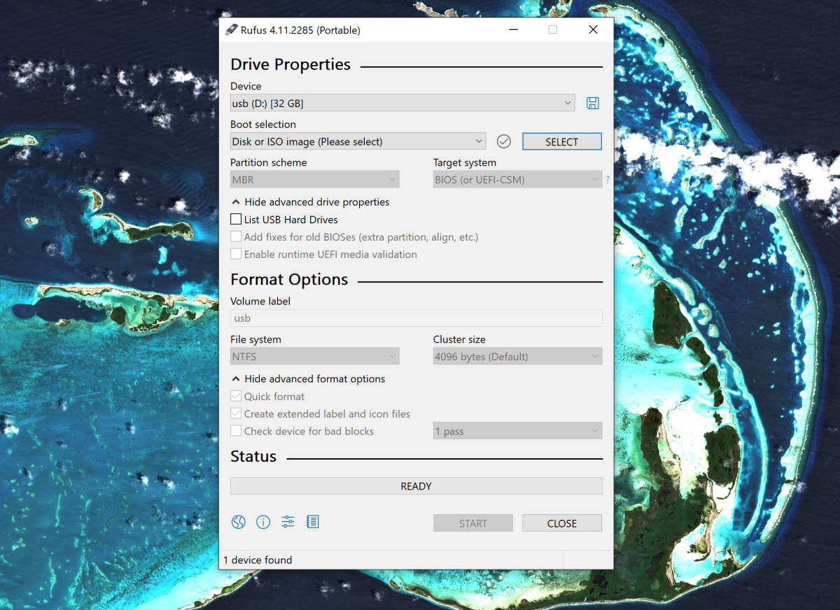 - Select USB Drive – Choose your USB device from the Device dropdown.
