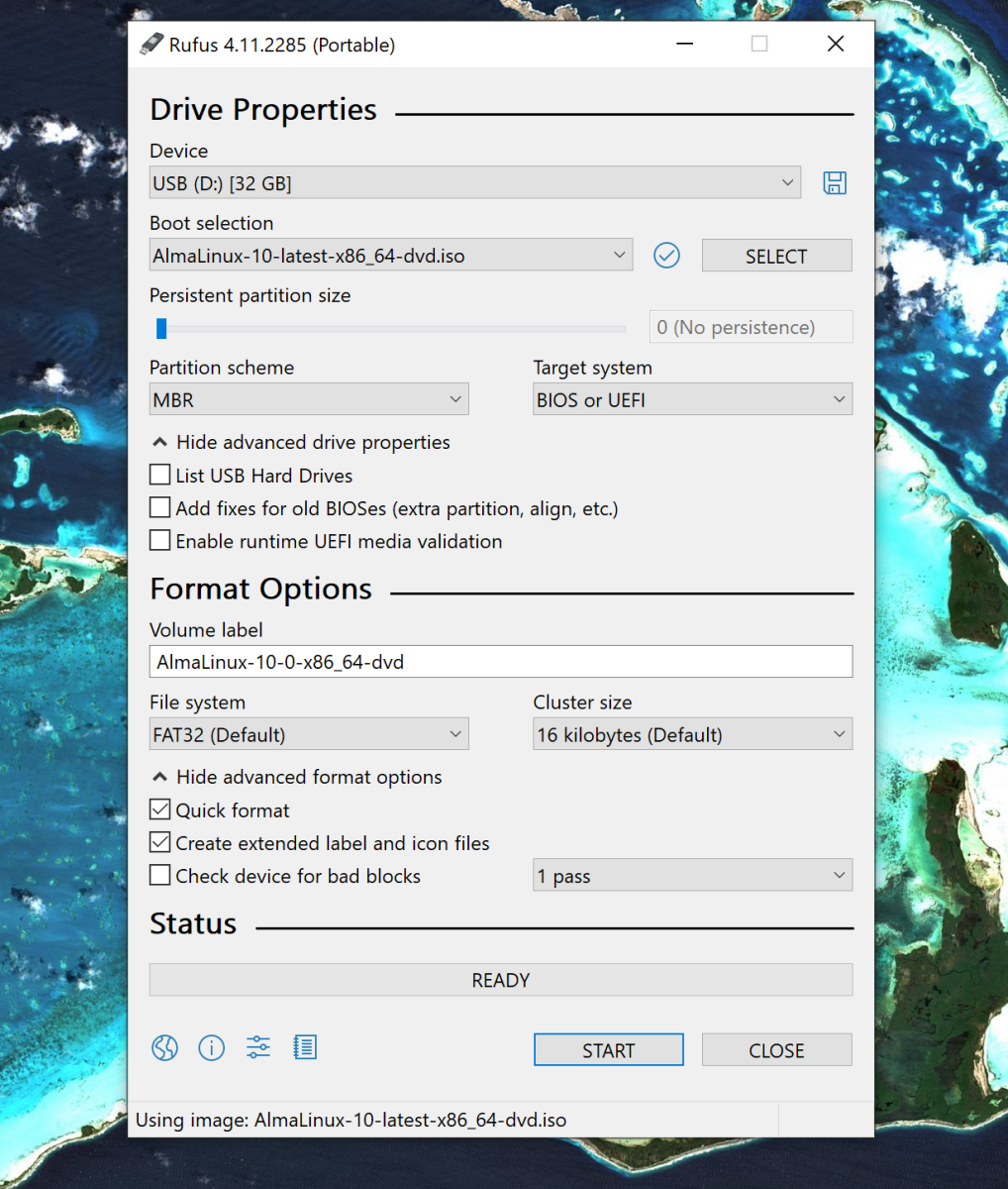 To create a bootable USB installer for AlmaLinux 10, follow the detailed steps below to prepare your USB drive using Rufus.
