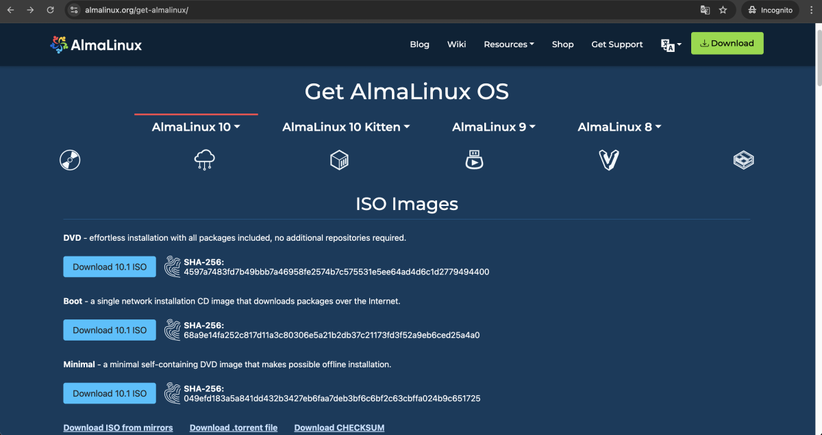 Step 1 : Download the AlmaLinux 8 ISO file from the official website: https://almalinux.org/get-almalinux/