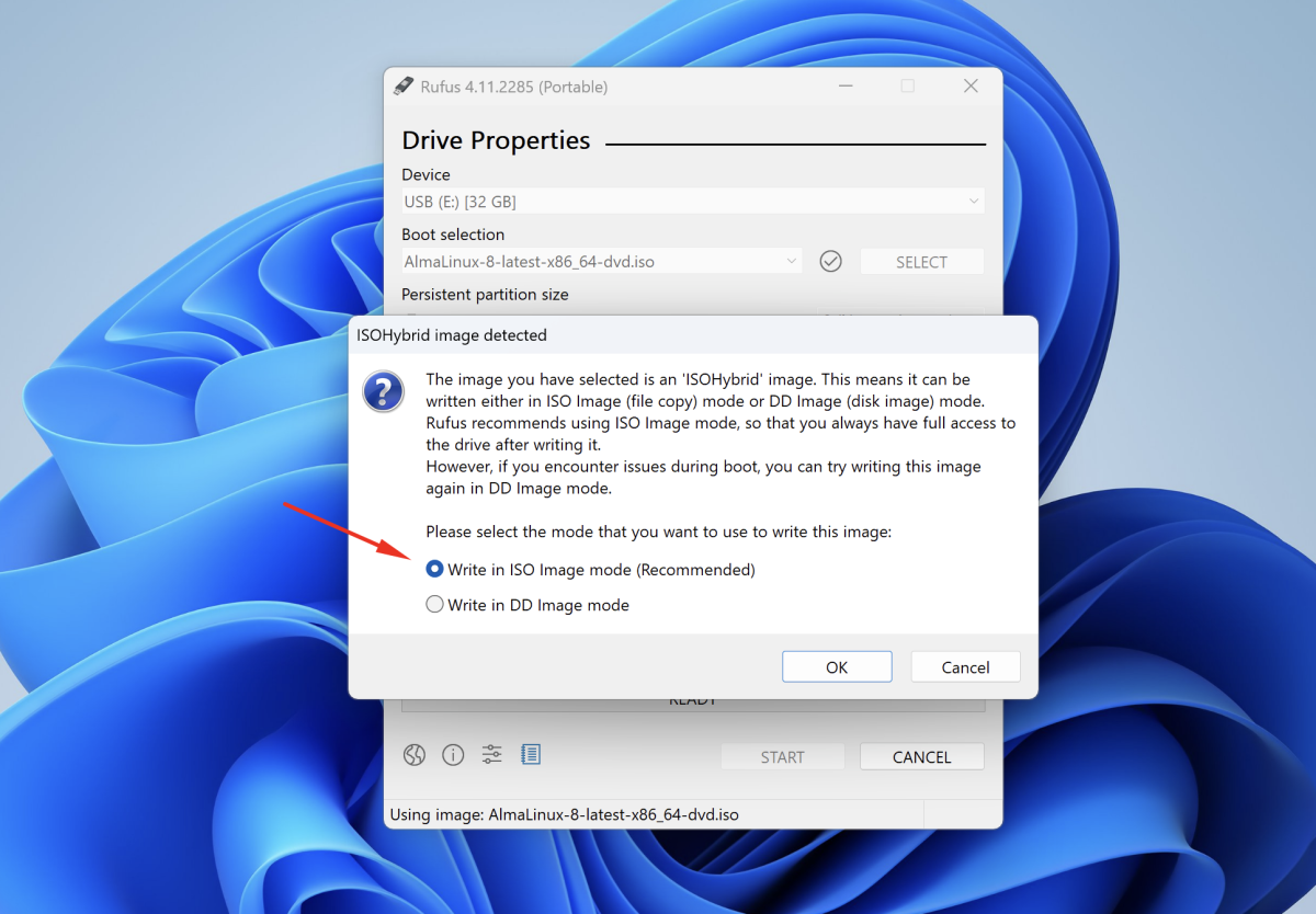 To create a bootable USB installer for AlmaLinux 8. Follow the steps below: