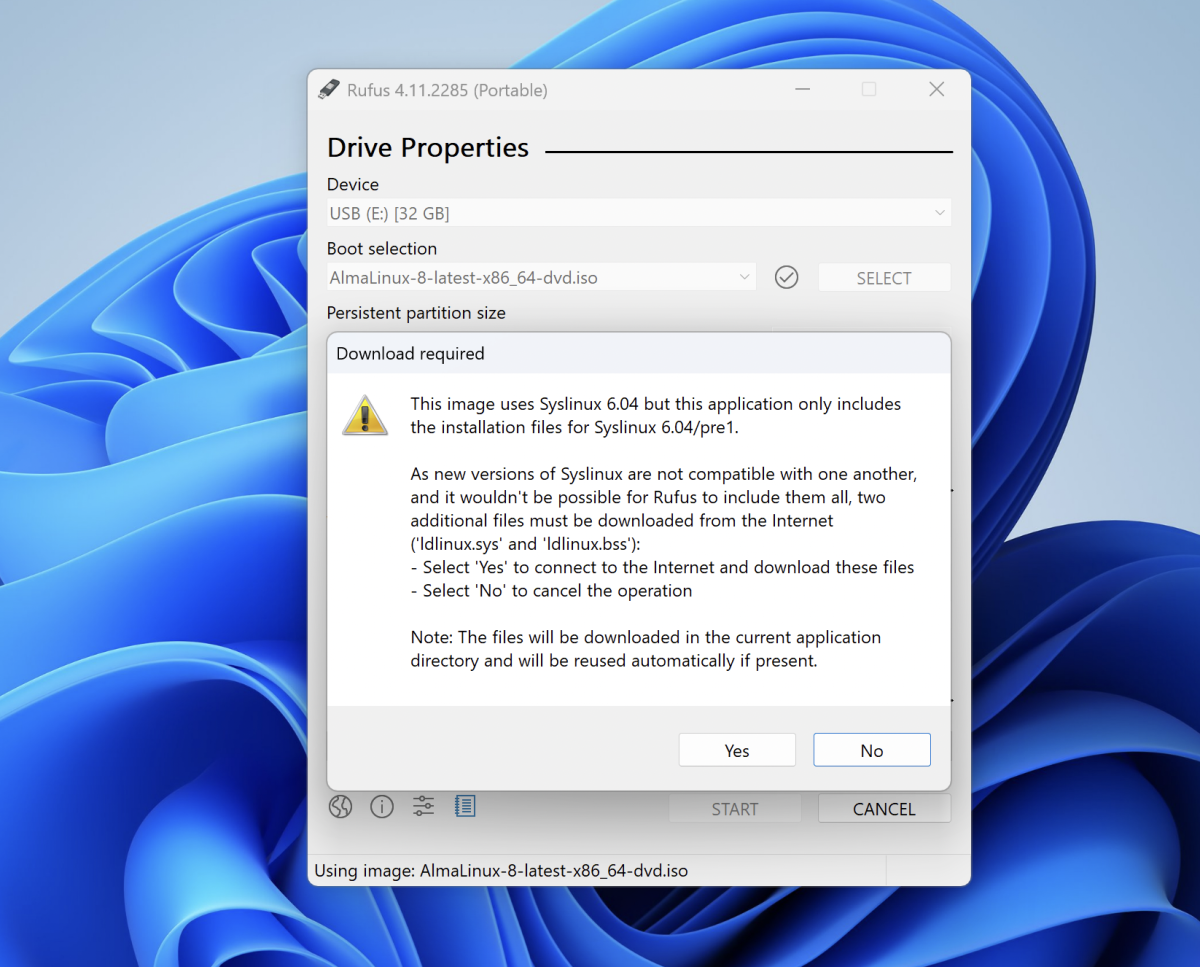 Step 8 : If Rufus asks to download required files such as a newer Syslinux version, select Yes.