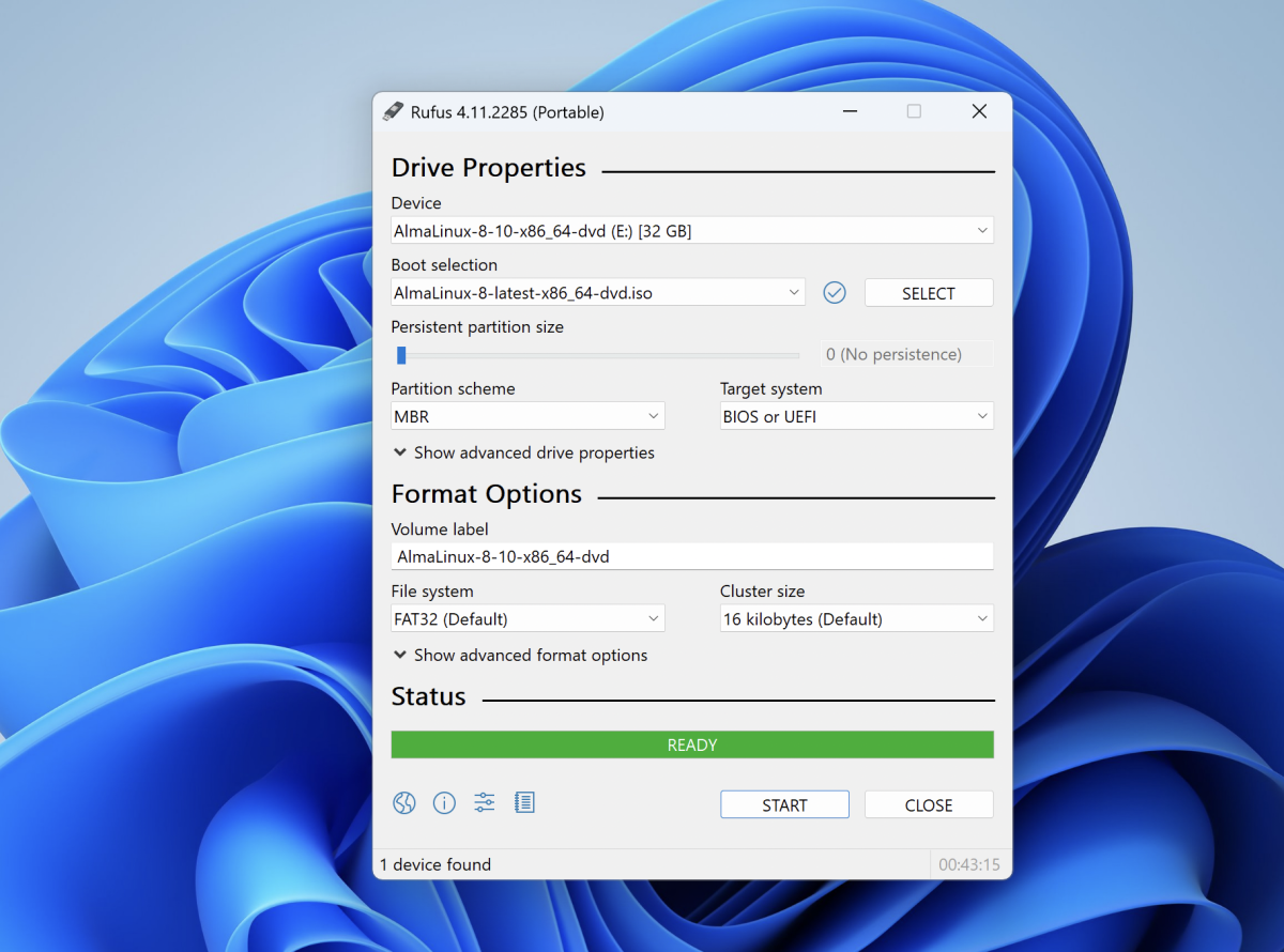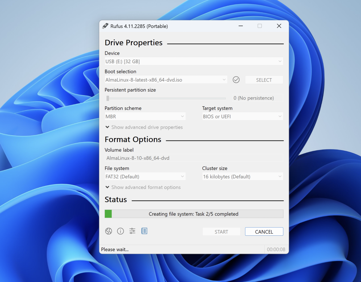 Congratulations, you have successfully created a bootable USB installer for AlmaLinux 8 and can now use it to install the operating system.