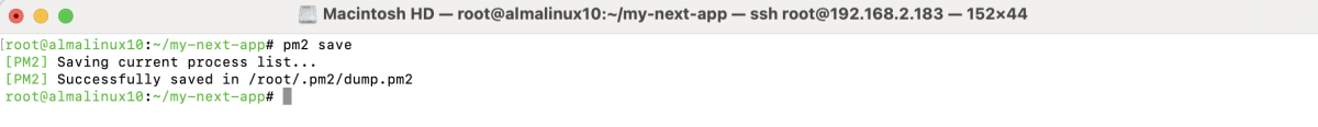 Step 6 : Save the current PM2 process list so it is restored after reboot.