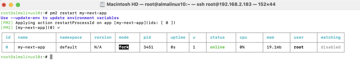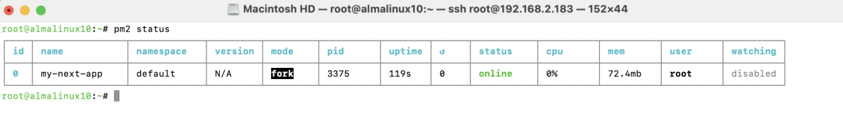 Congratulations, you have successfully deployed a React application using PM2 on AlmaLinux 10.