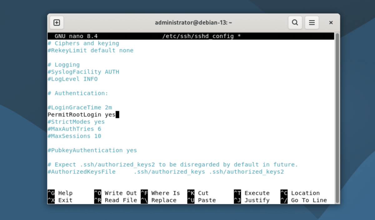 Congratulations, you have successfully enabled root login via SSH on Debian 13.
