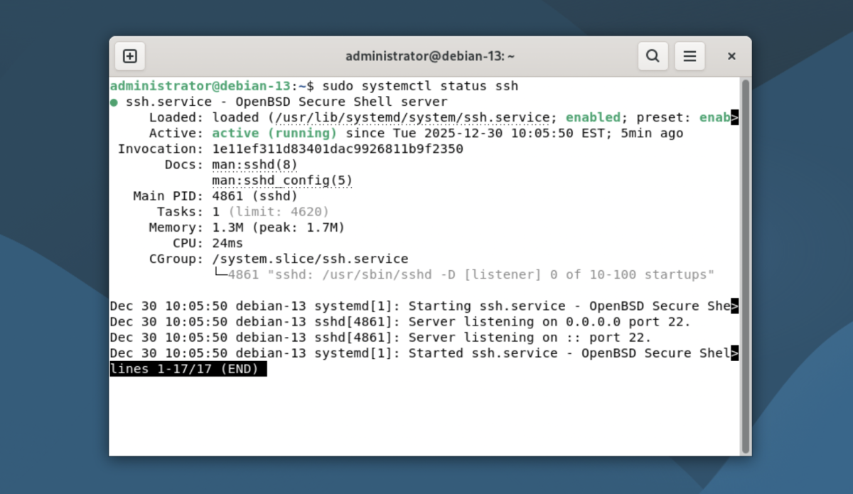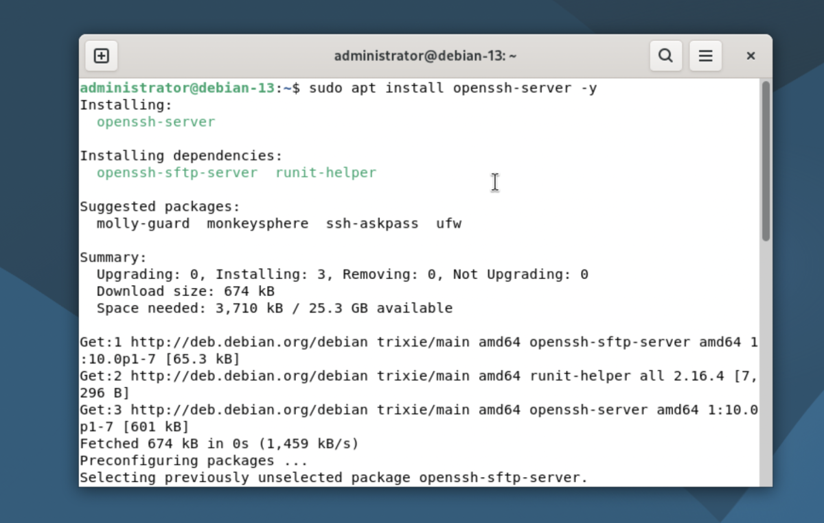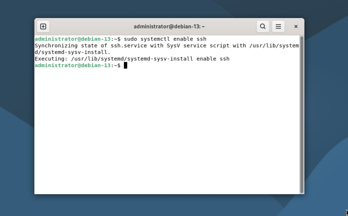 Congratulations, you have successfully enabled SSH on Debian 13 and can now connect to the system remotely.