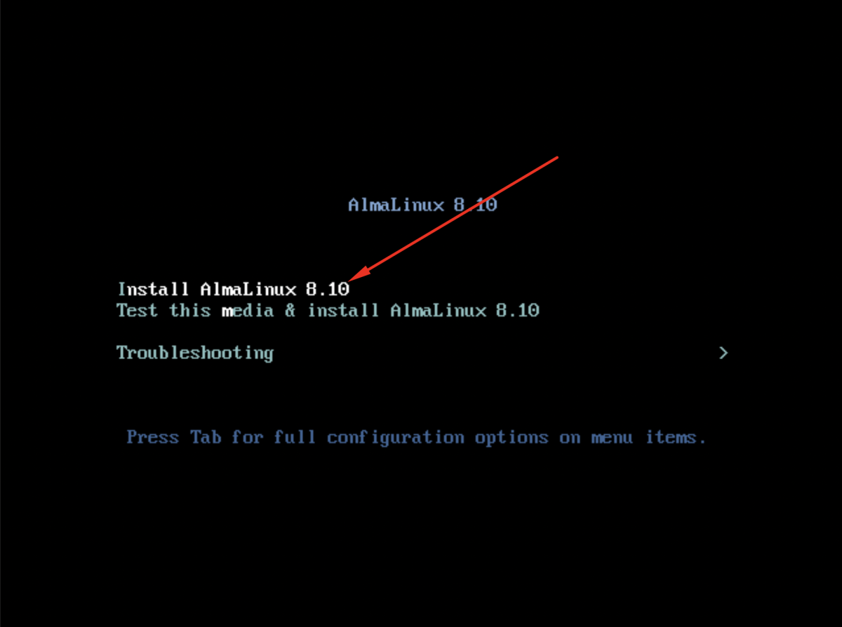 Step 2 : At the boot menu, choose Install AlmaLinux 8 and press Enter.
