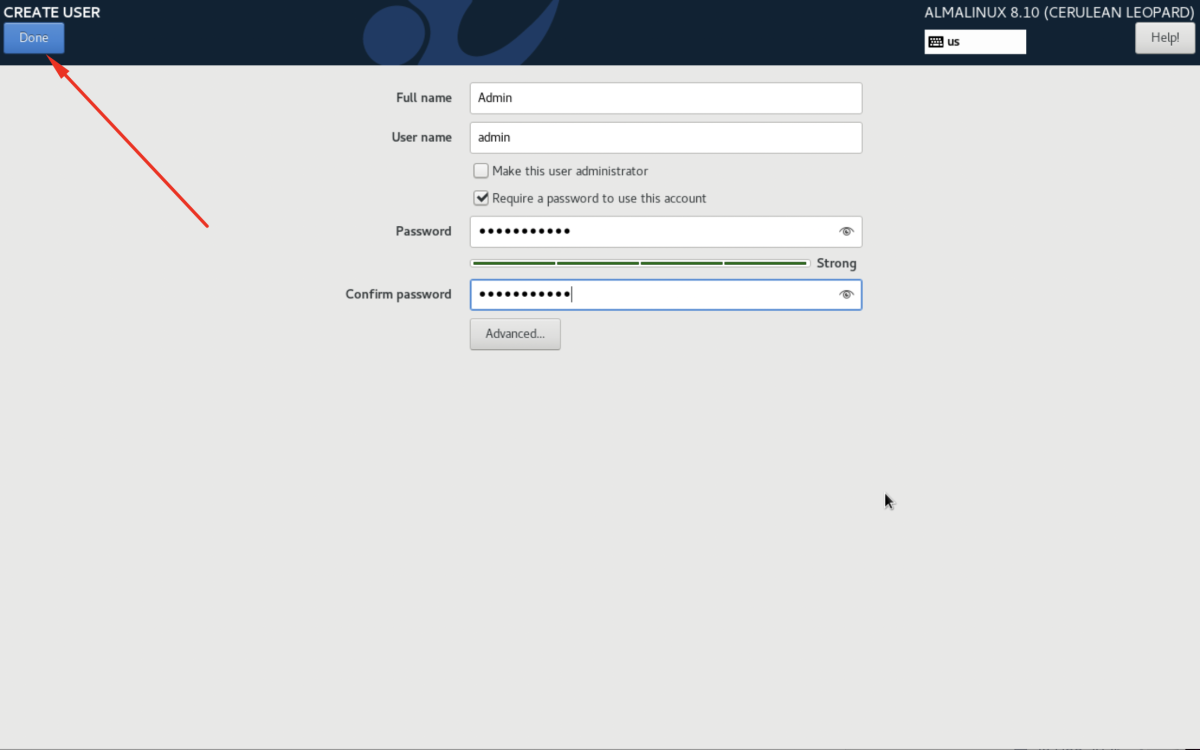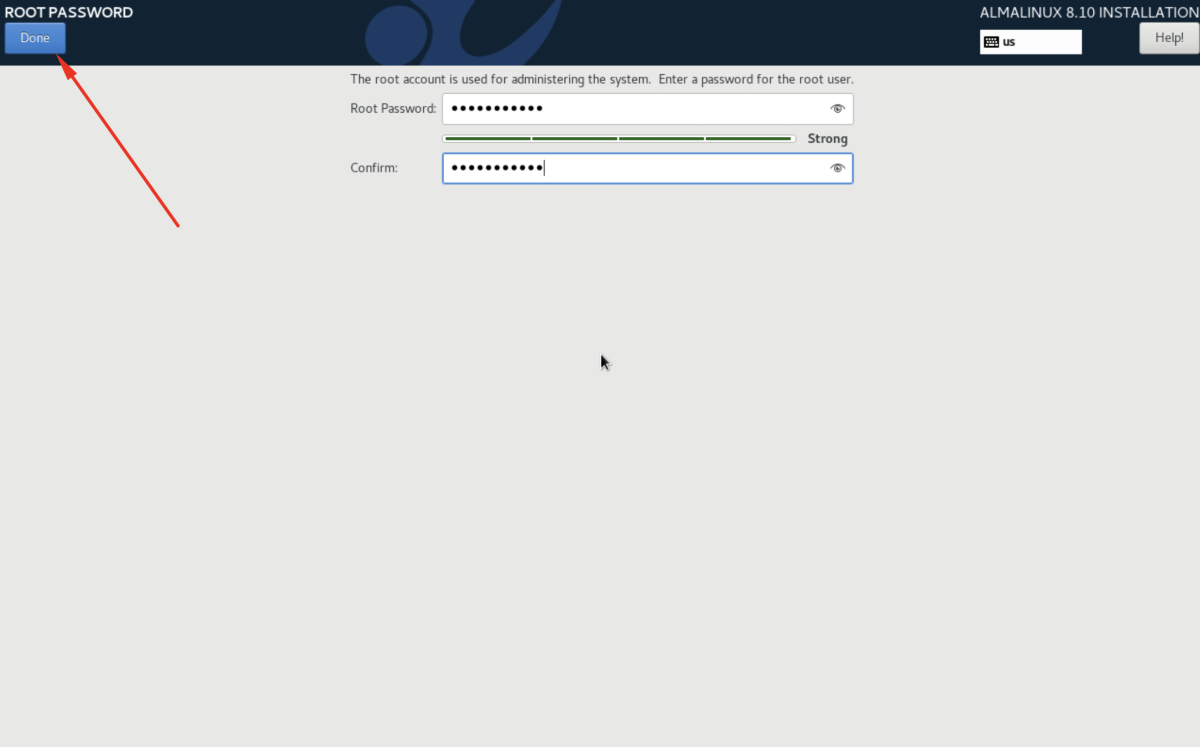 Step 7 : Enter the root password, confirm it, then click Done to return to the Installation Summary screen.