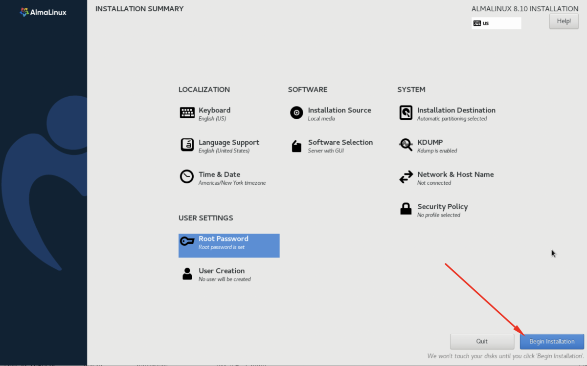 Step 16 : The AlmaLinux 8 installation is now complete.