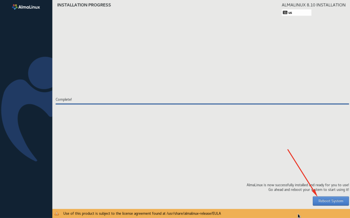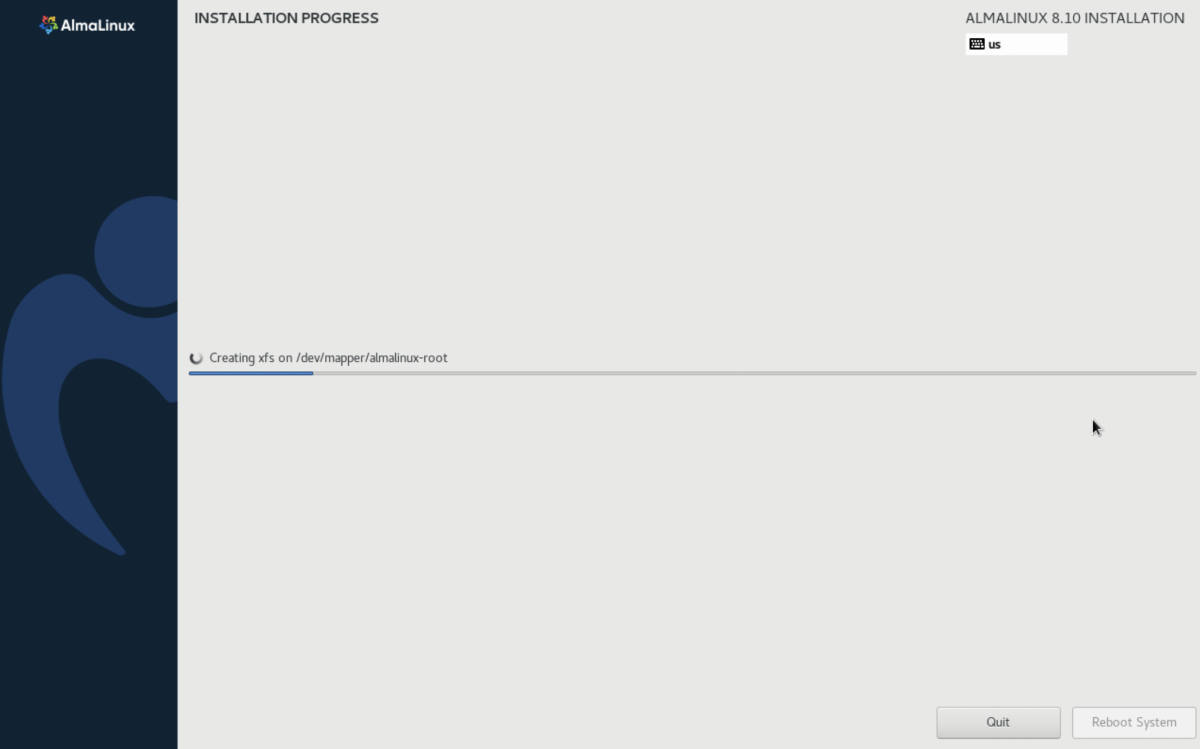 Step 9 : Wait until the system finishes installing AlmaLinux 8.