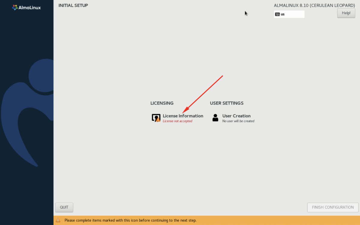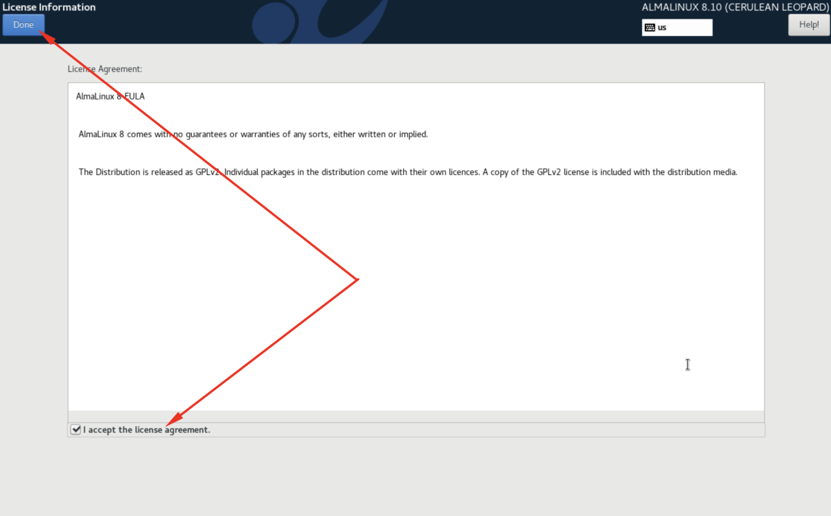 Step 12 : Click License Information, accept the License Agreement, and click Done.