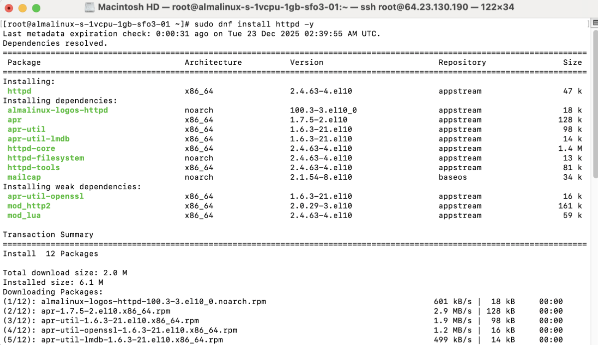 To install and configure Apache on AlmaLinux 10, follow the steps below: