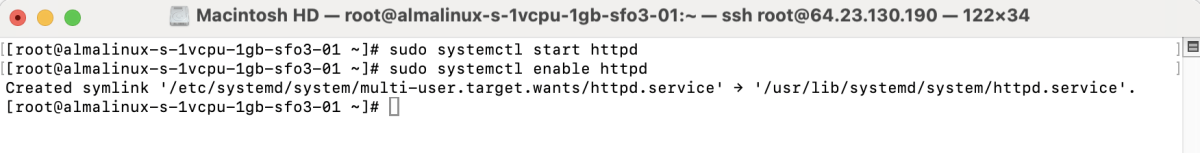 Step 5 : Start Apache and enable it to run automatically at system boot:
