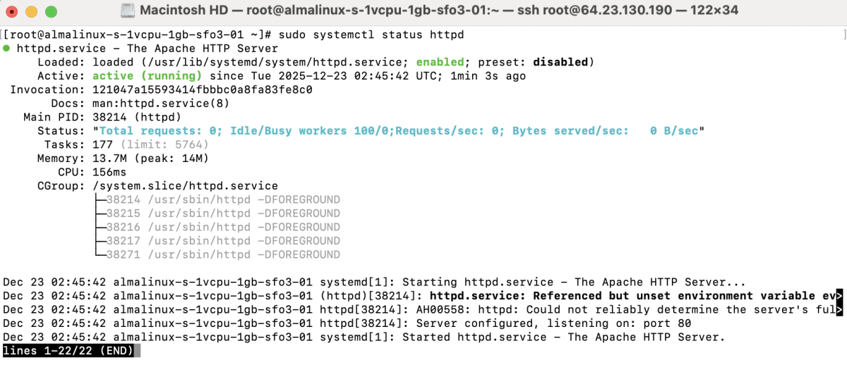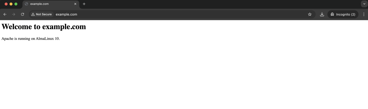 Congratulations! You have successfully installed and configured Apache on AlmaLinux 10.