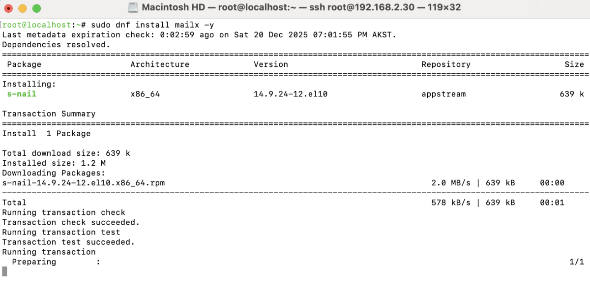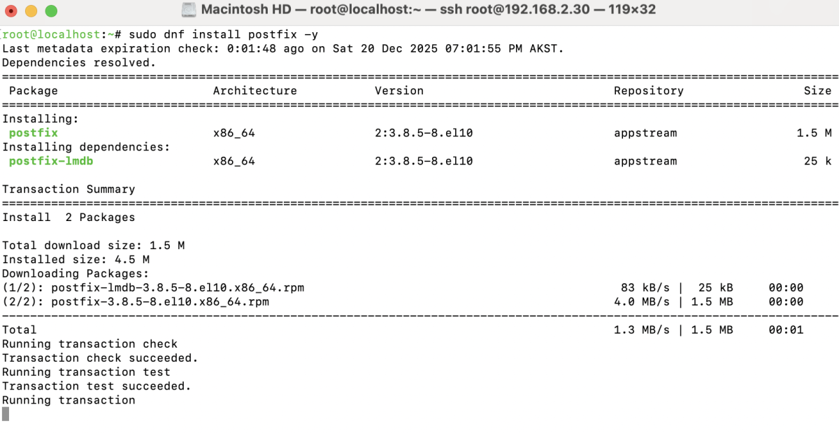 To install and configure Postfix on AlmaLinux 10, follow the steps below to set up a basic mail transfer agent and test email delivery.