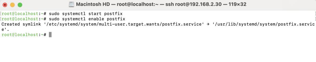 Start Postfix and enable it to run at boot: