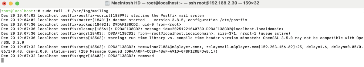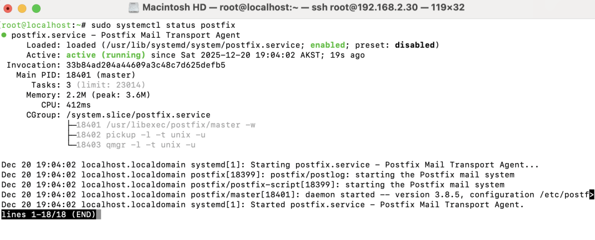 Check whether Postfix is running correctly: