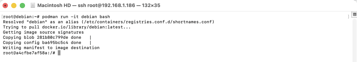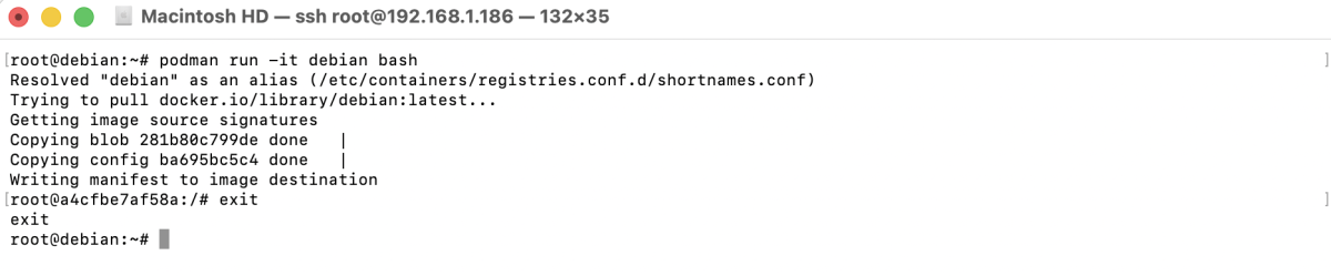 Step 4 : Run a test Debian container to confirm Podman is working as expected: