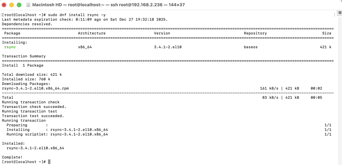Congratulations! You have successfully installed rsync on AlmaLinux 10.