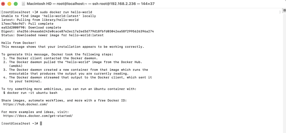 Congratulations! You have successfully installed Docker on AlmaLinux 10.