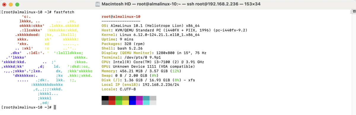 Congratulations! You have successfully installed Fastfetch on AlmaLinux 10 and can now view detailed system information.