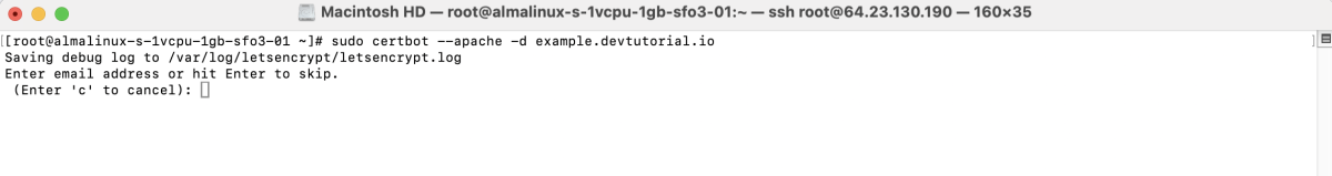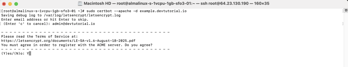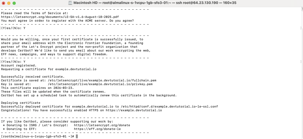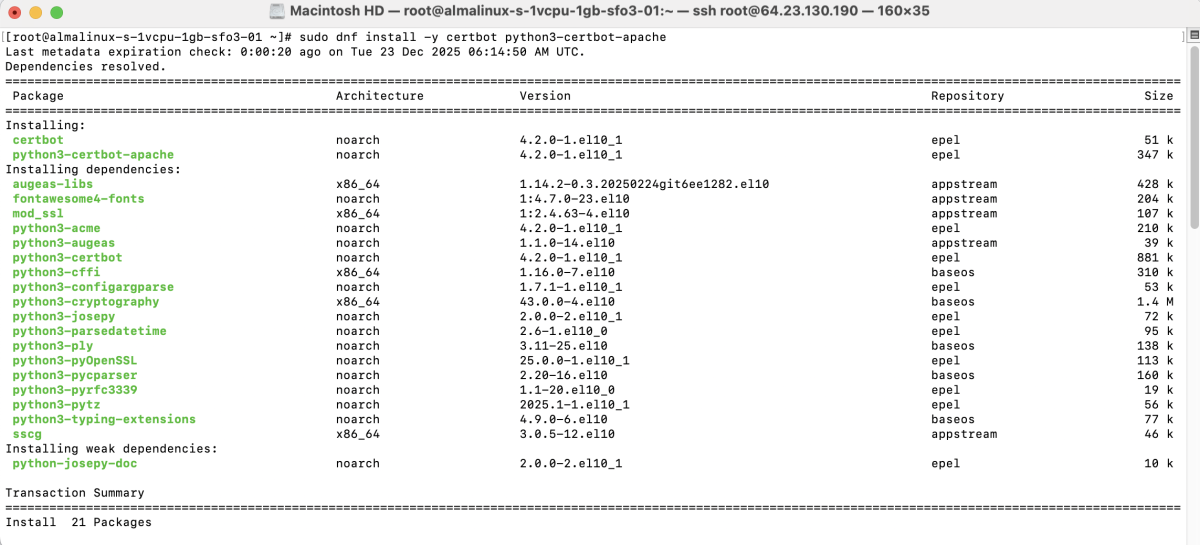 To install Let's Encrypt SSL on Apache running on AlmaLinux 10, follow the steps below:
