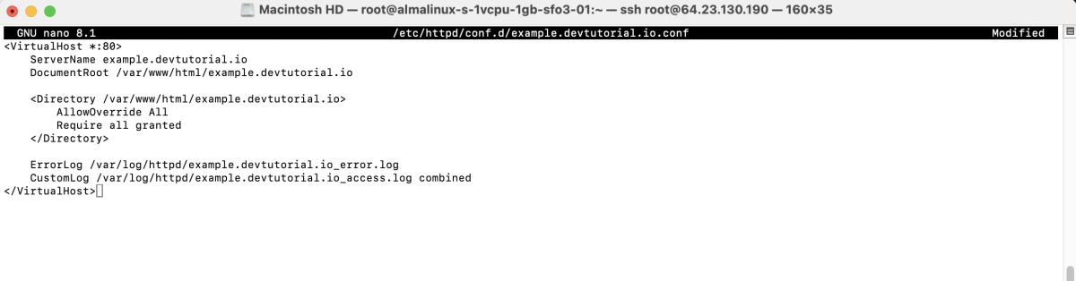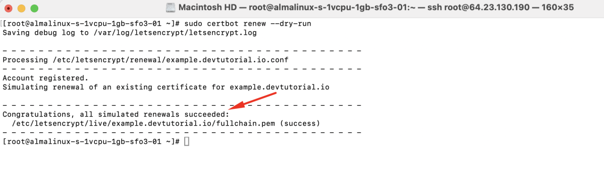 Step 1 : Make sure your domain (for example, example.devtutorial.io) is already pointed to your server's public IP address. This is required for domain verification.