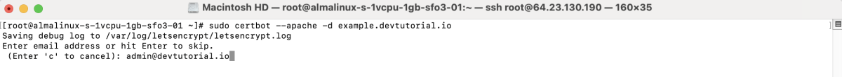 Step 9 : Run Certbot to obtain and install the SSL certificate: