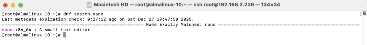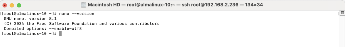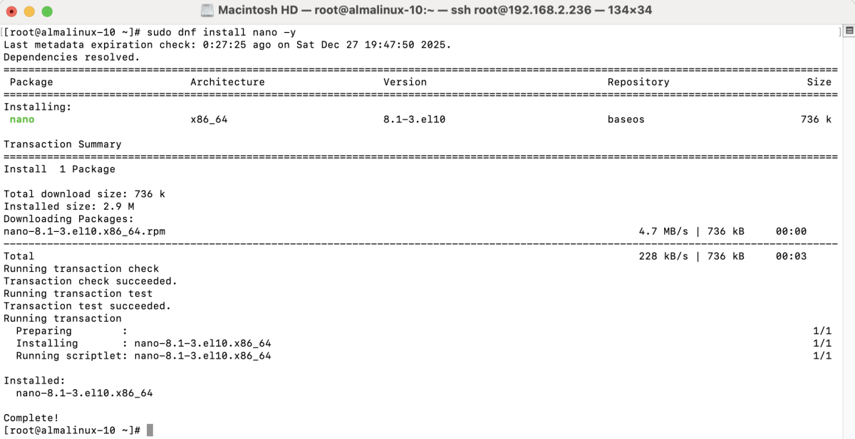 Congratulations! You have successfully installed Nano on AlmaLinux 10.