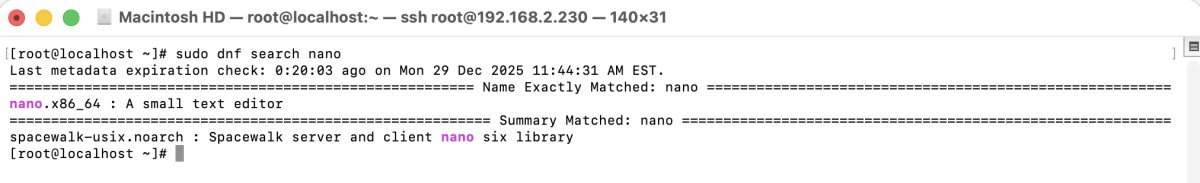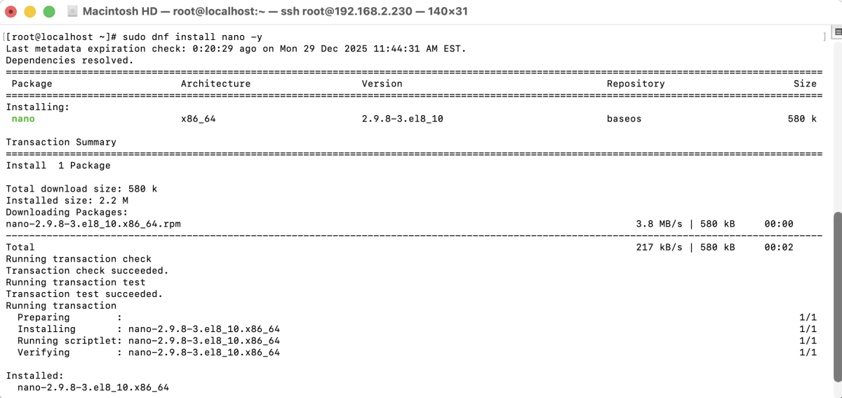 Congratulations, you have successfully installed Nano on AlmaLinux 8.
