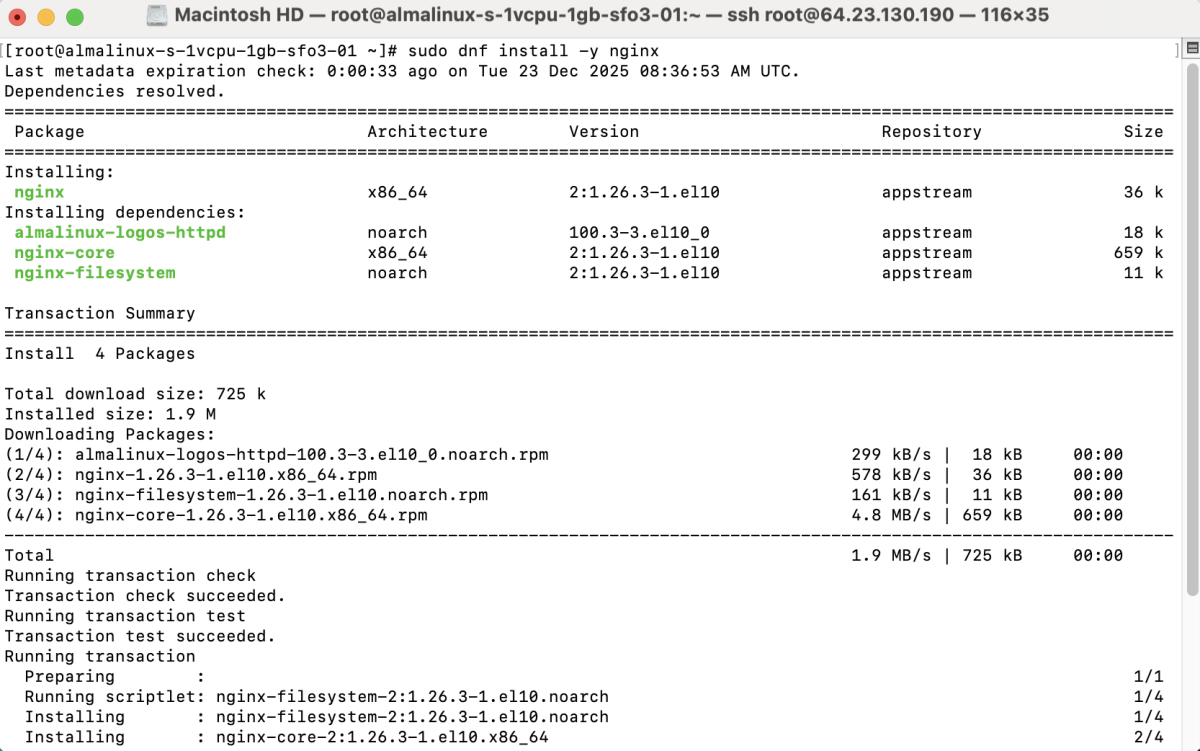 To install Nginx on AlmaLinux 10, follow the steps below: