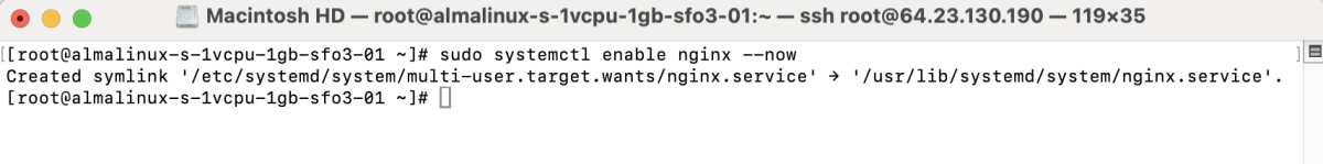 Step 4 : Enable Nginx to start on boot and start the service immediately: