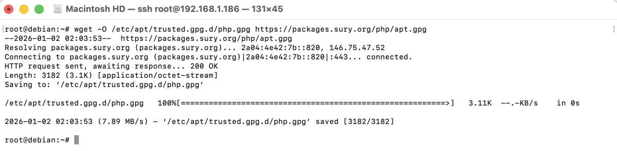 Step 3 : Add the official GPG key to verify packages from the SURY PHP repository.