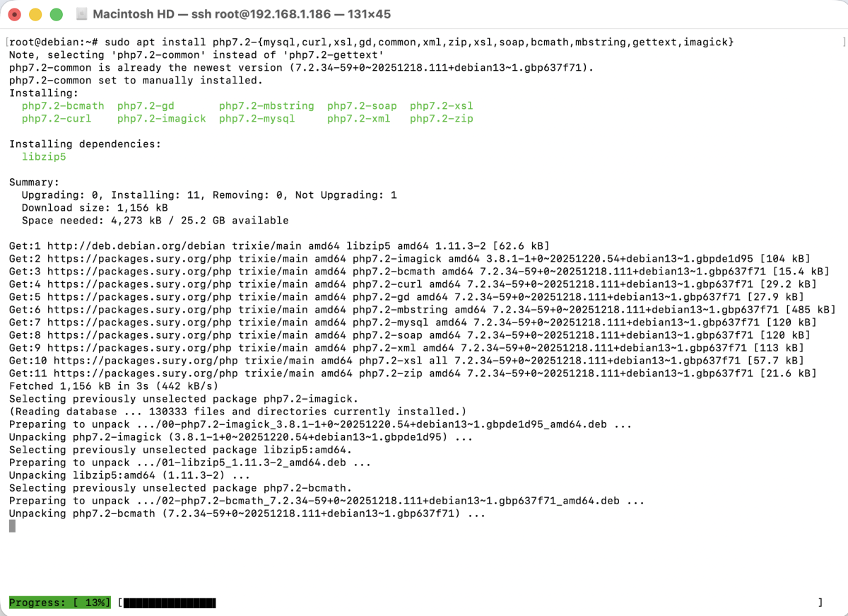 To install PHP 7.2 on Debian 13, follow the steps below: