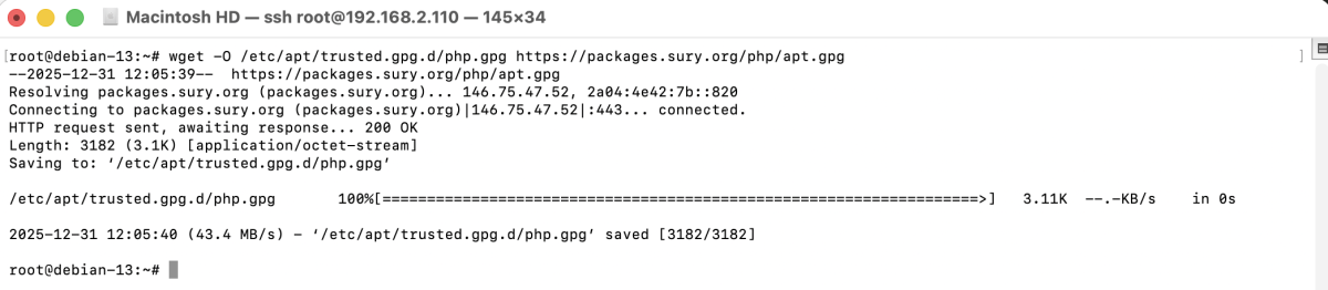 Step 3 : Add the official GPG key to verify packages from the SURY PHP repository.