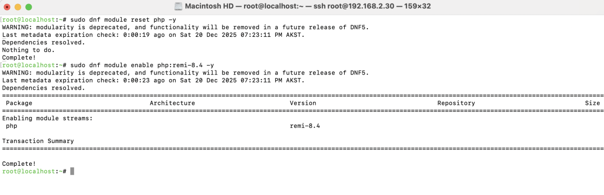 Step 4 : Reset the default PHP module and enable PHP 8.4: