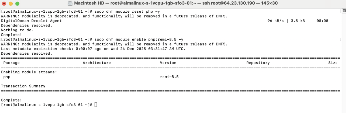 Step 4 : Reset the default PHP module and enable PHP 8.5: