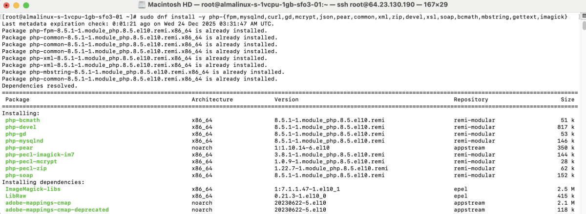 To install PHP 8.5 for Nginx on AlmaLinux 10, follow the steps below: