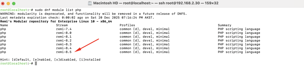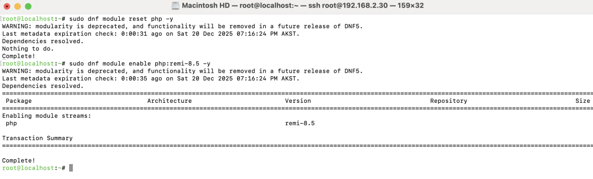 Step 4 : Reset the default PHP module and enable PHP 8.5: