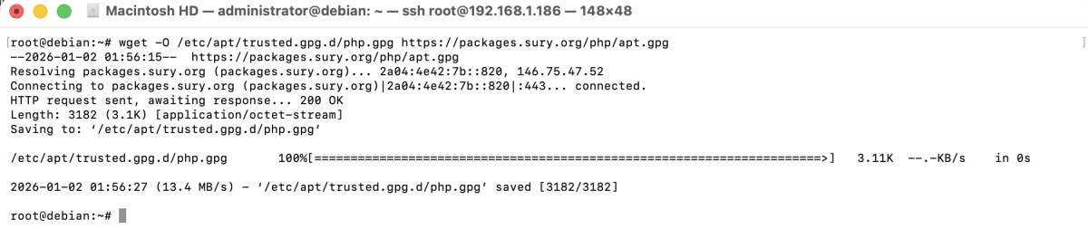 Step 3 : Add the official SURY GPG key to verify PHP packages.
