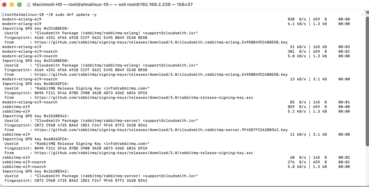 (*) The latest available repositories are for RHEL 9 but are compatible with RHEL/AlmaLinux 10. This guide will be updated when RabbitMQ provides official support for RHEL 10.