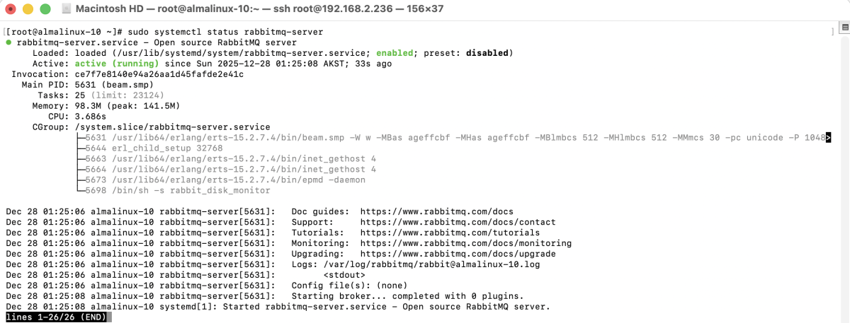 Congratulations! You have successfully installed RabbitMQ on AlmaLinux 10.