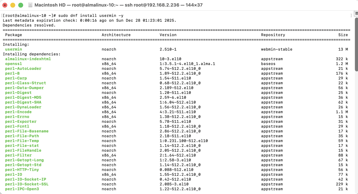 To install Usermin on AlmaLinux 10, follow the steps below.