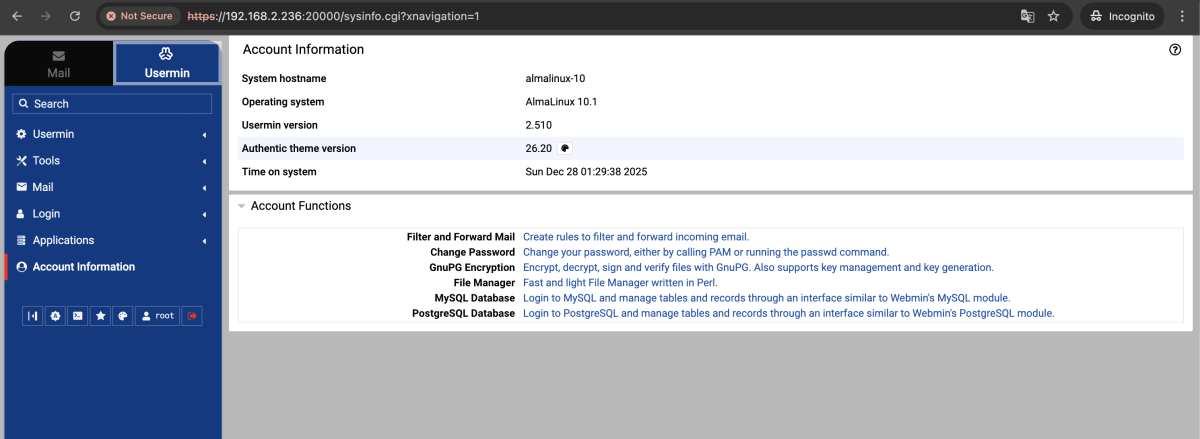 Congratulations! You have successfully installed Usermin on AlmaLinux 10.