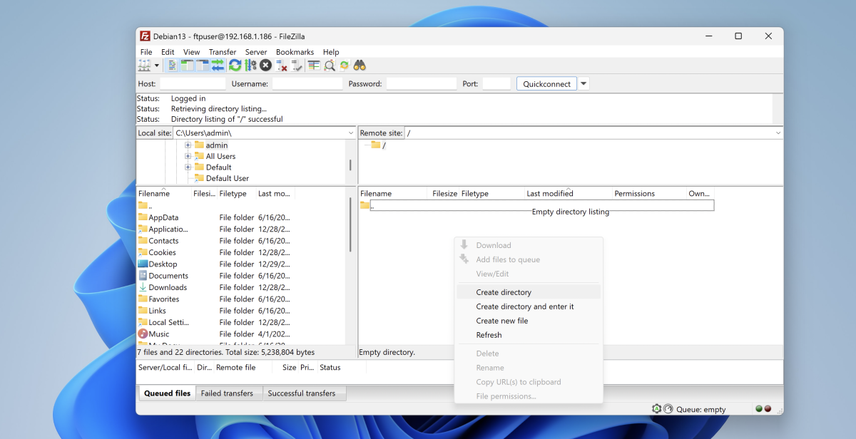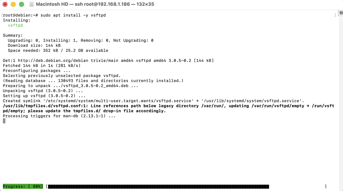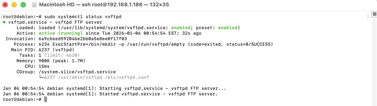Congratulations! You have successfully installed and configured the vsftpd FTP server on Debian 13.