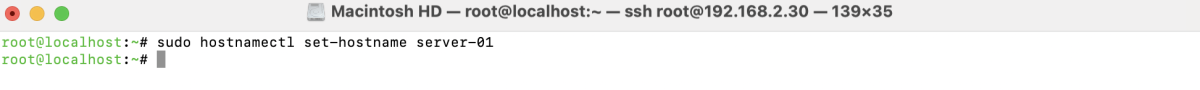 Use hostnamectl to change the hostname. Replace server-01 with the name you want: