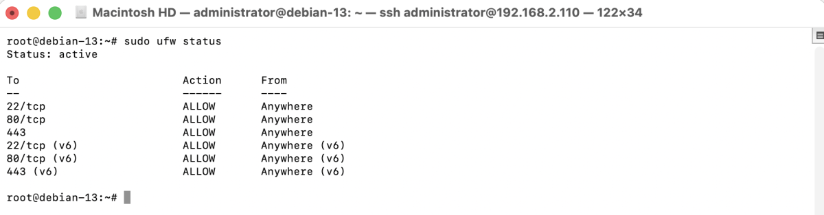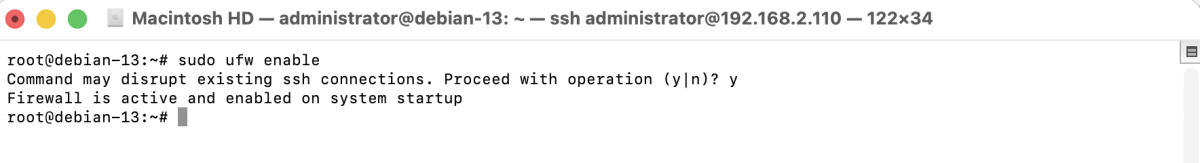 Congratulations, you have successfully set up and enabled a firewall with UFW on Debian 13.